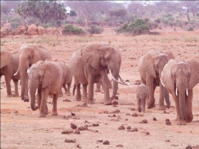 Between January and April, the majority of families were alone or with other families and those families with bulls were sighted at a water source. During January and February many families were found feeding at the base of the hills; several females even with very young calves were half way to the top of a hill. Although Tsavo elephants frequently climb the hills, I am often amazed at their ability to climb up and over the top. In March, many families aggregated in the dry riverbed to dig for water from the water table. In March, a young female of 15 years, picked-up a branch, turned it horizontally and scratched her chest and leg. This is the fourth time I’ve seen this behavior suggesting tool-use may be common among Tsavo bulls and females. Cassiopeia, a female I’ve not seen in several years, with her 5-year old calf was sighted twice with other families near Voi River. Known females with offspring born over the last two-three years were all healthy including, Summer, Savanna, Crescent, Batik, Parsley, B2, Peony, Skye, Bauhinia and Poppy.